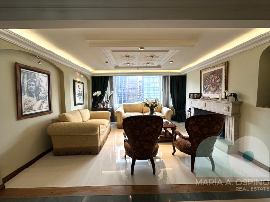 Vendemos amplio apartamento clásico en excelente ubicación. Exterior con muy buena luz natural. Cuenta con sala con chimenea y comedor independiente, estudio con biblioteca, hall de alcobas, 3 habitaciones amplias con closet. 2 baños completos y baño social. Cocina cerrada, cuarto y baño de servicio, y zona de lavandería. 1 parqueadero amplio cubierto. Sistema hidráulico actualizado por tubería pvc. El edificio tiene vigilancia 24/7. Ubicado en un sector estratégico, cerca a la Autopista Norte, Calle 100, Av 19. Fácil acceso a transporte.