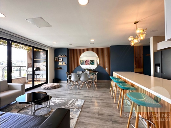 Vendemos apartamento moderno con espectacular vista panóramica. Excelentes acabados y mejoras realizadas por los propietarios, muebles empotrados a la medida, luces indirectas, sistema de domótica en todo el apartamento, teatro en casa en la sala (videos beam, telón y sistema de sonido automátizado), puerta de seguridad y ventanería antiruido, entre otros.